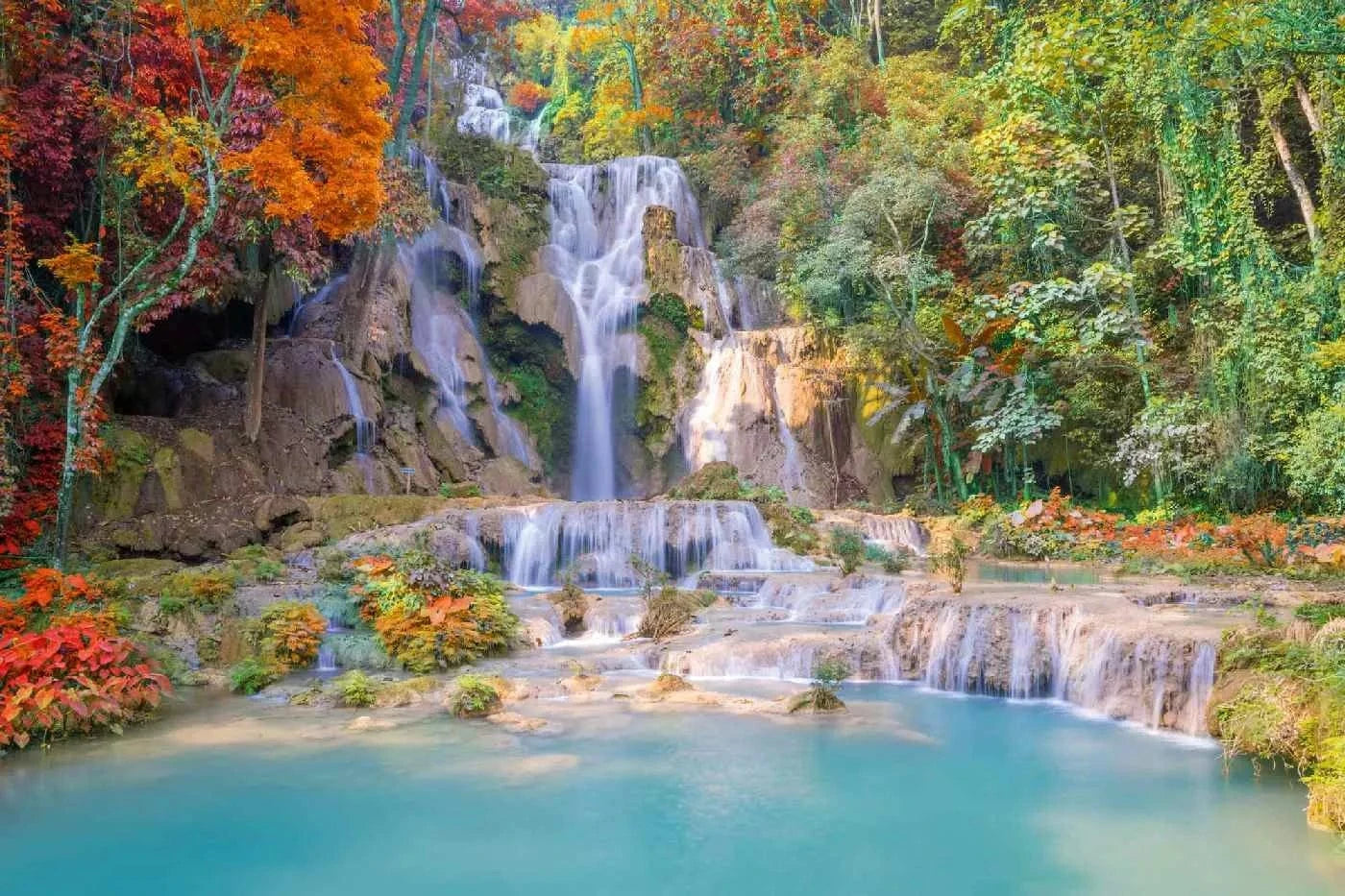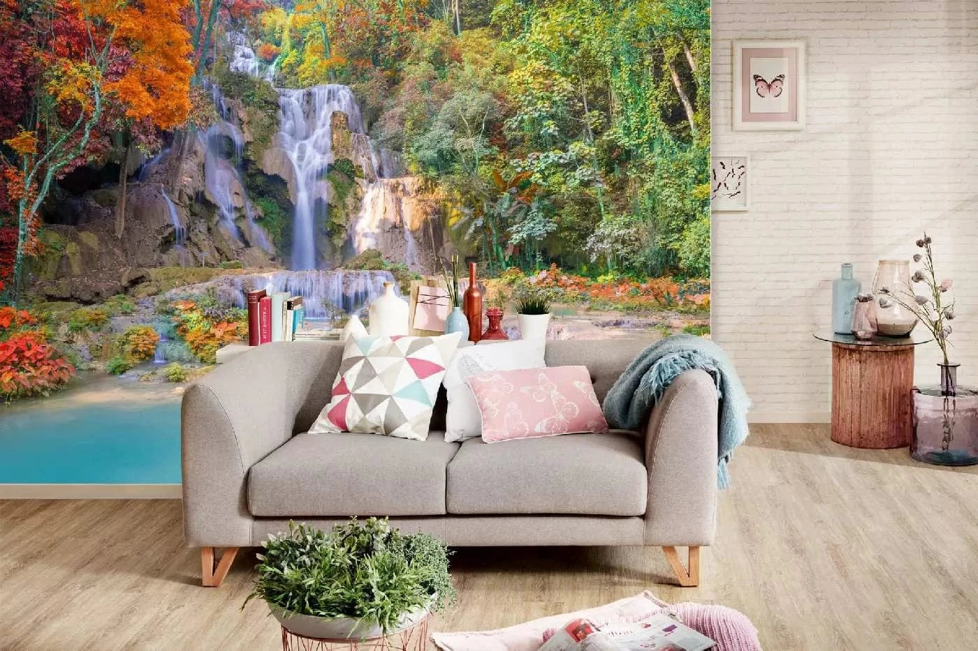 Fototapetes ar ūdenskritumu - Ūdenskritums lietus mežā, (375x250 cm)