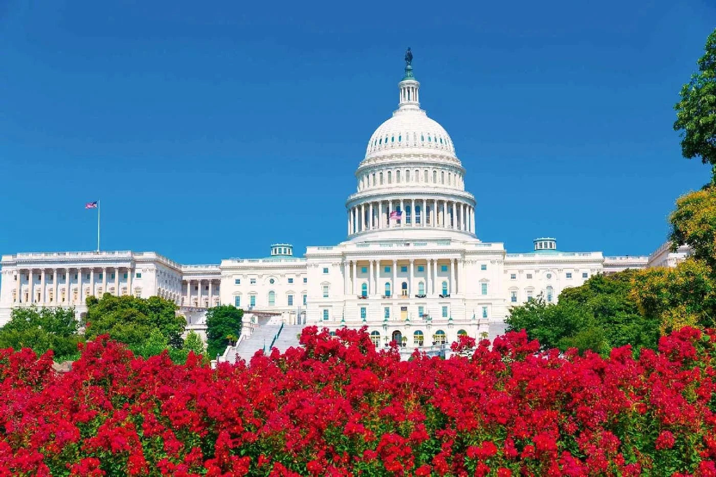 Фотообои с темой США - Капитолий США и цветы, 375x250 см.