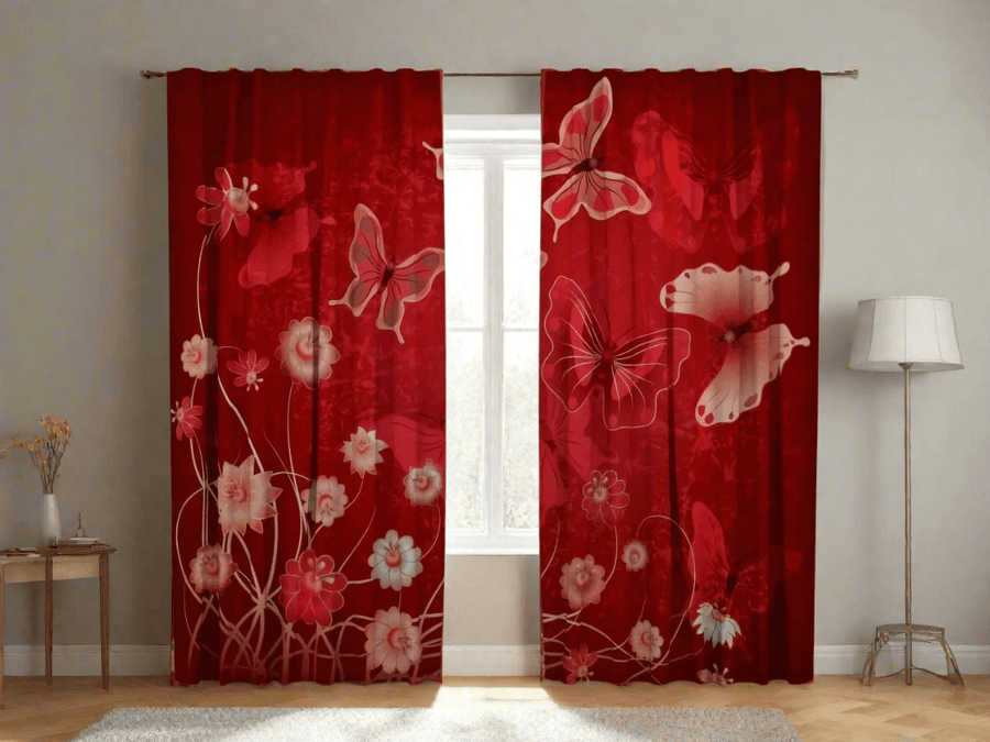 Sarkani aizkari ar tauriņiem - piešķirs jūsu telpai īpašu šarmu Tapetenshop.lv