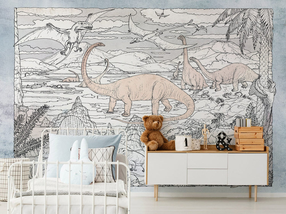 Bērnu fototapetes - Ar roku zīmēti dinozauri pasteļkrāsāsās G-ART