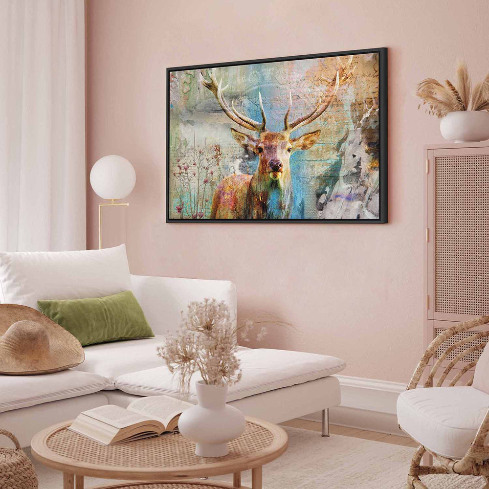 Картина в черной деревянной раме - Олень