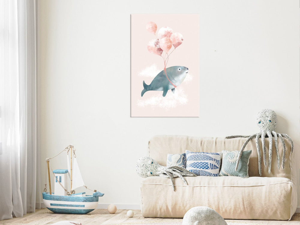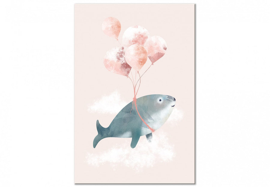 Fototapetes - Vaļis, kas peld mākoņos – pasaku abstrakcija pasteļtoņos G-ART