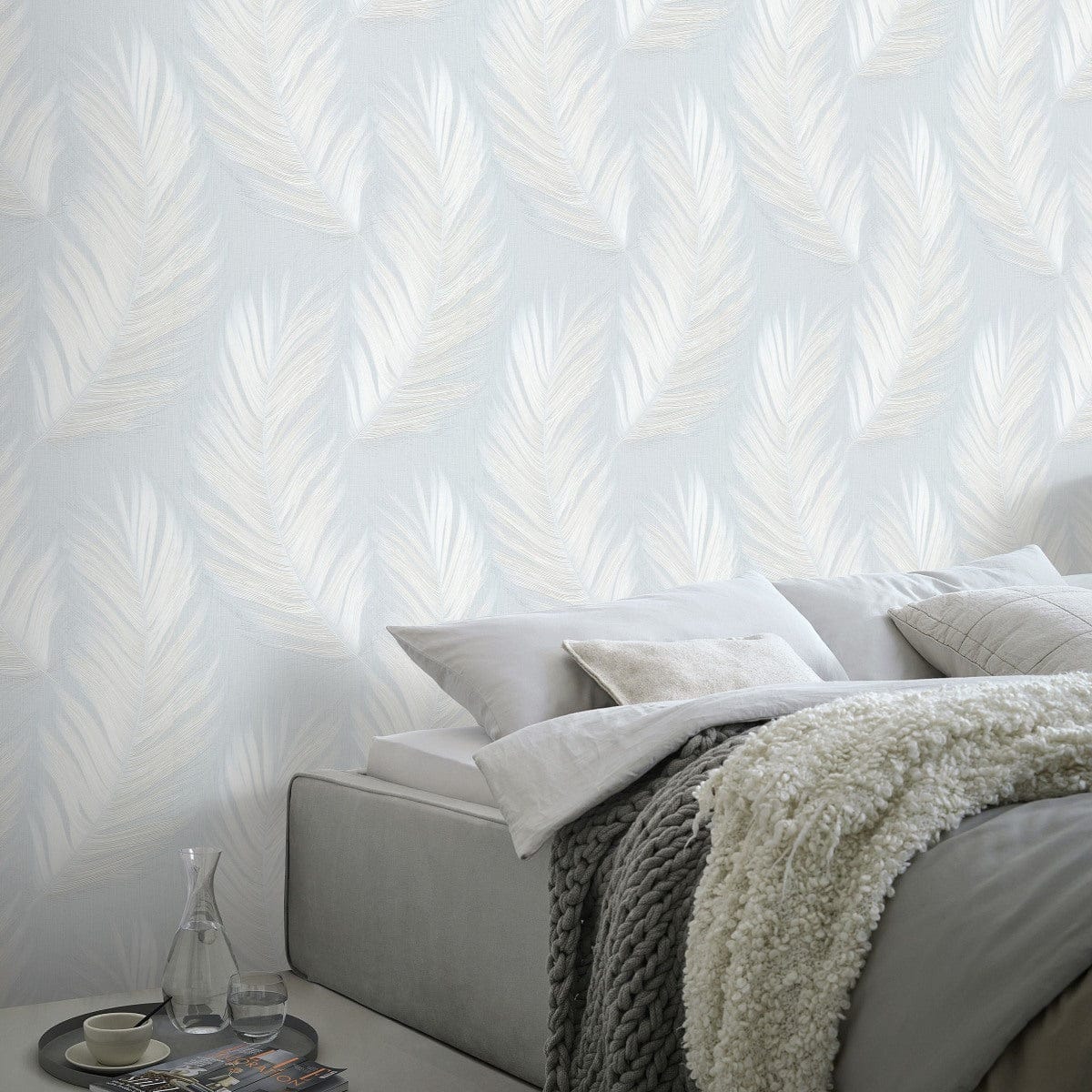 Свежесть и чистота. Светло-голубые и белые листья создают воздушную и расслабляющую обстановку. Отличный выбор для спальни.