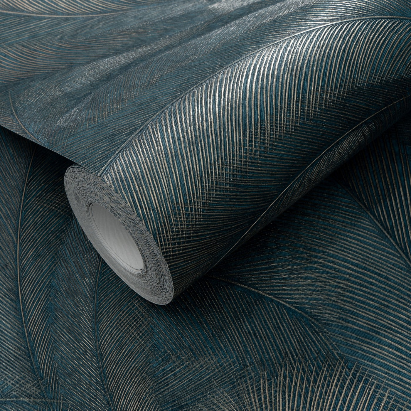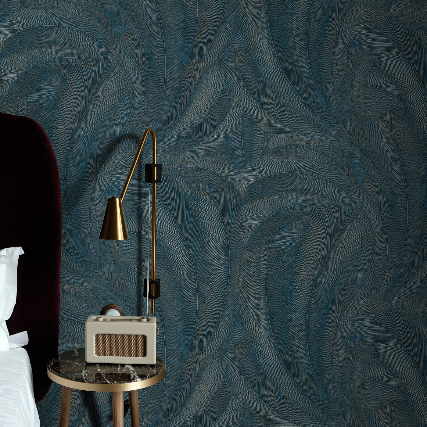 Игра контрастов. Темно-синий фон с золотыми и бирюзовыми листовыми элементами создает эксклюзивный и художественный образ.