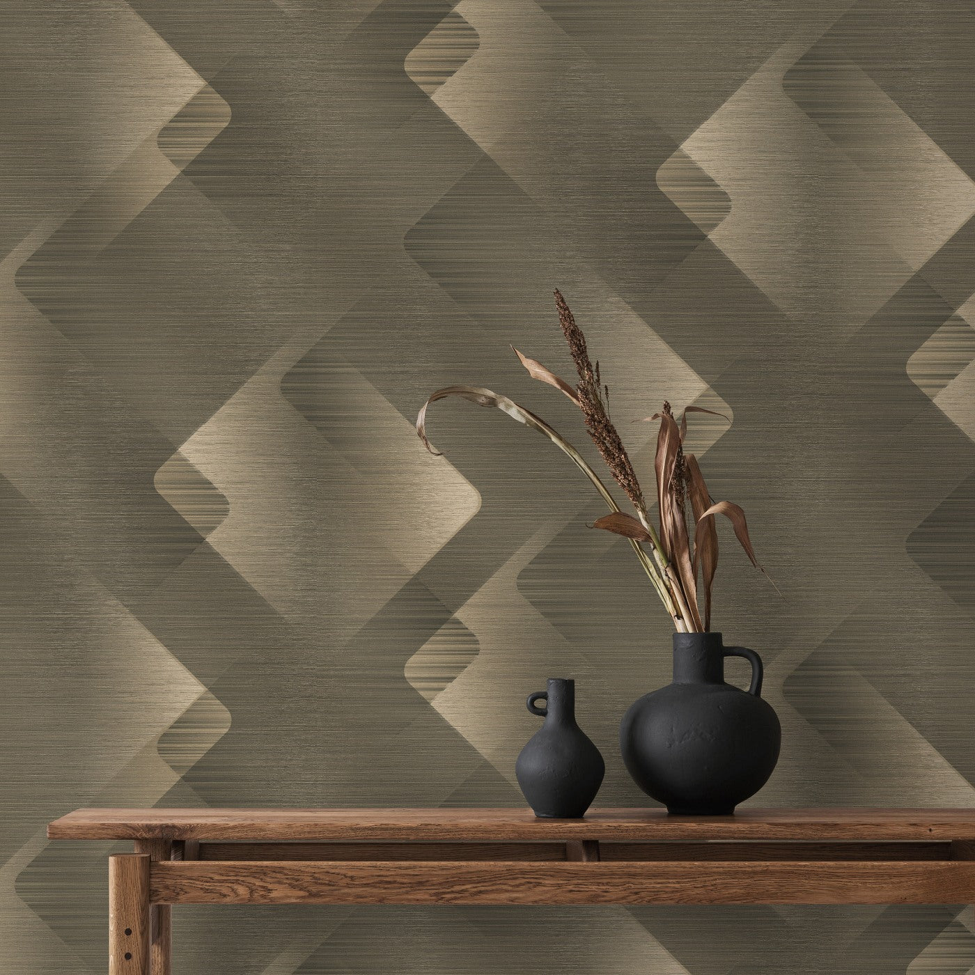 Элегантная геометрия. Коричневые и золотистые тона с тонкими линиями создают структурированный и богатый образ интерьера.