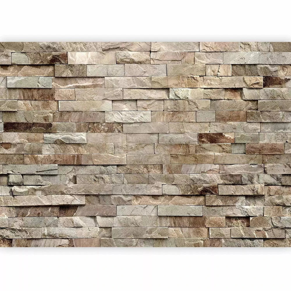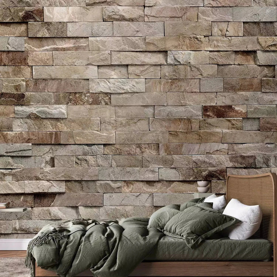 Fototapetes ar akmens sienu bēšos toņos - guļamistabā G-ART