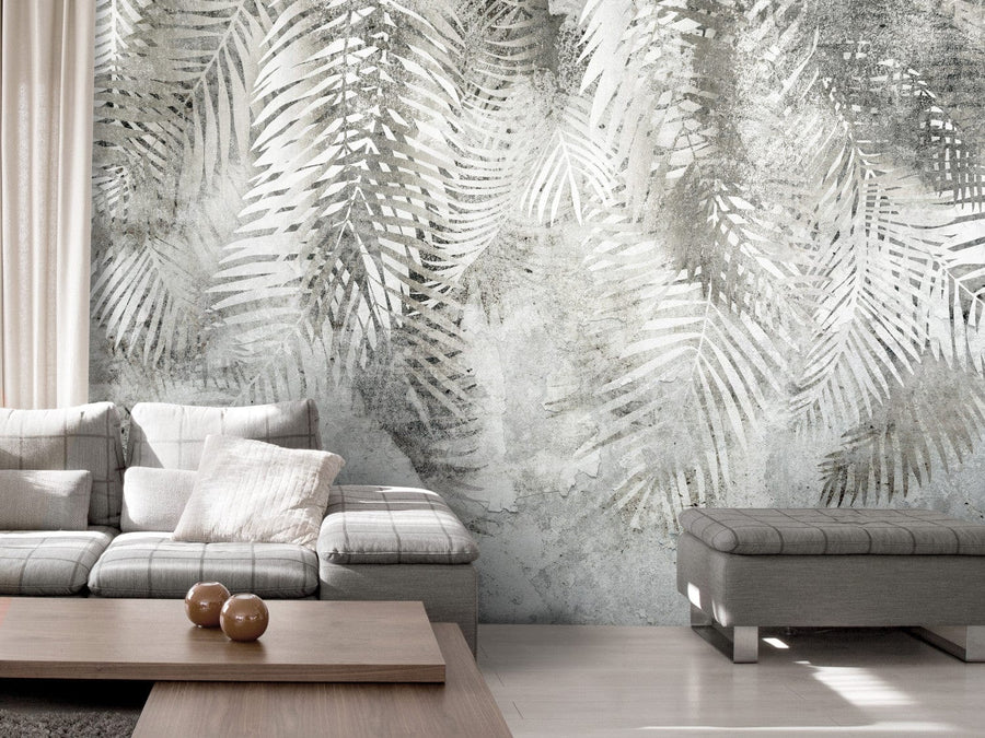 Fototapetes ar papardes lapām pelēkā krāsā - Gaisma un ēna - 142880 G-ART