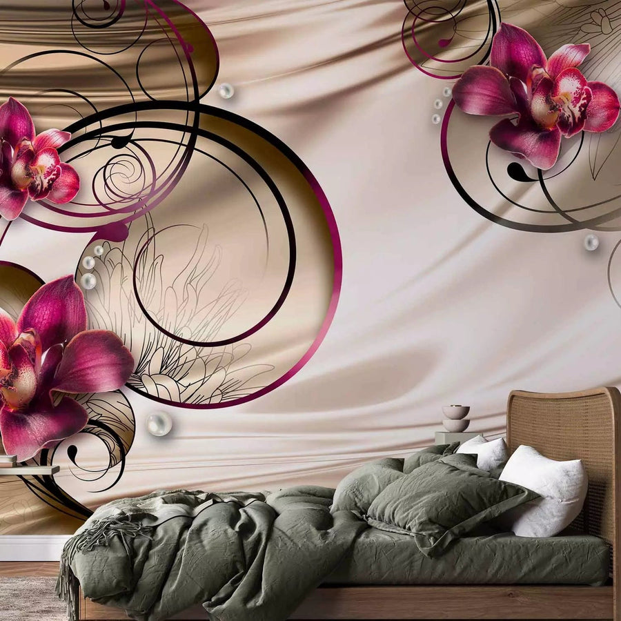 Fototapetes ar rozā orhidejām uz samta fona - Bauda - 60313 G-ART