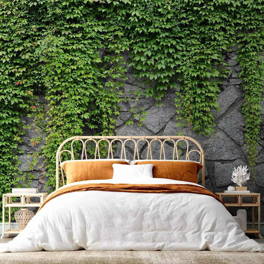 Fototapetes - Zaļā siena - ar akmens un zaļām lapām G-ART
