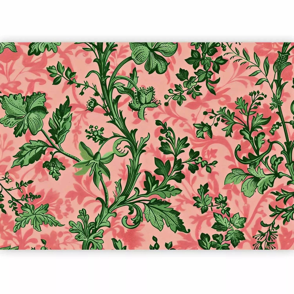 Fototapetes - Zaļas lapas - klasiski ziedu motīvi uz rozā fona G-ART