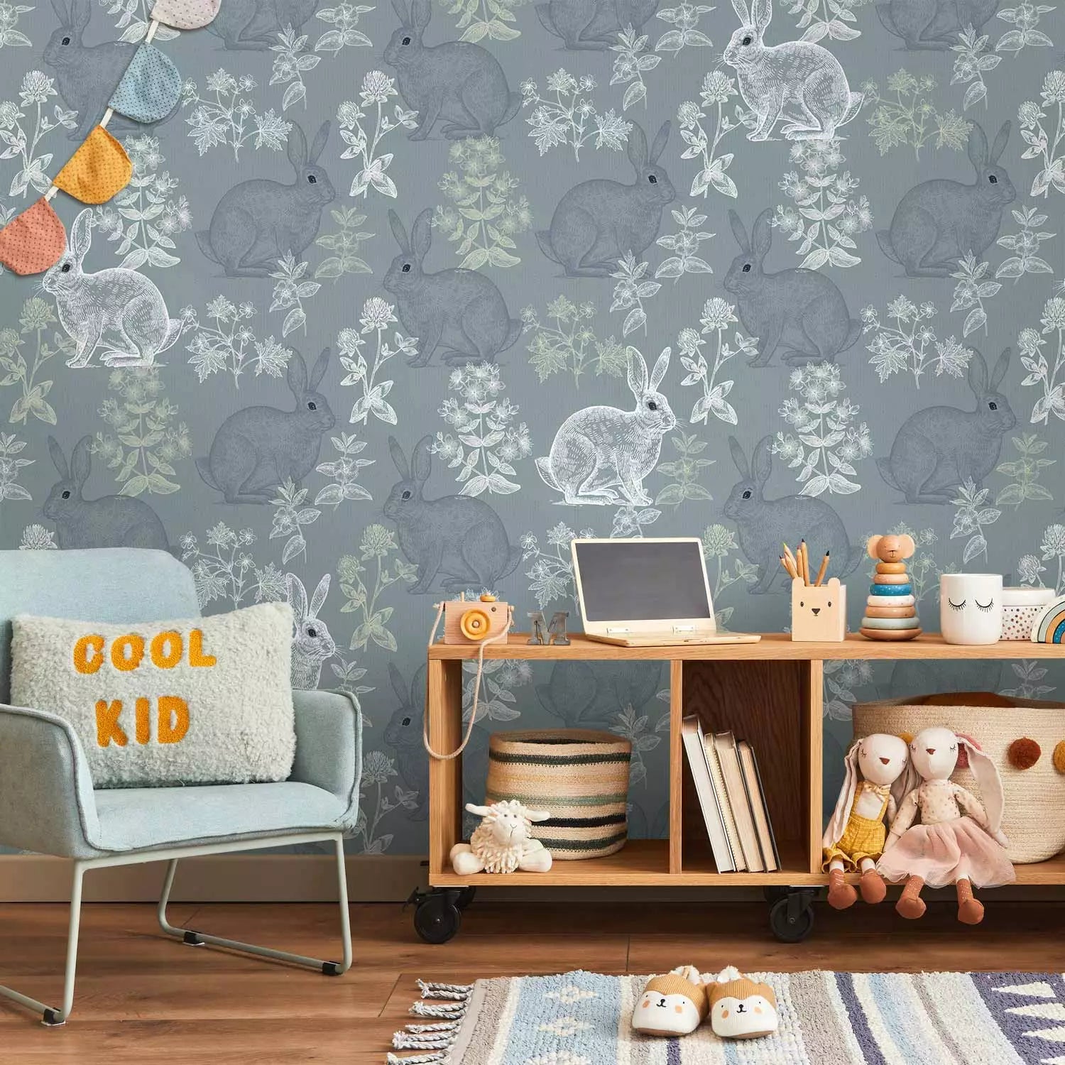 Фотообои - Серые и белые кролики на фоне цветов, 149216
