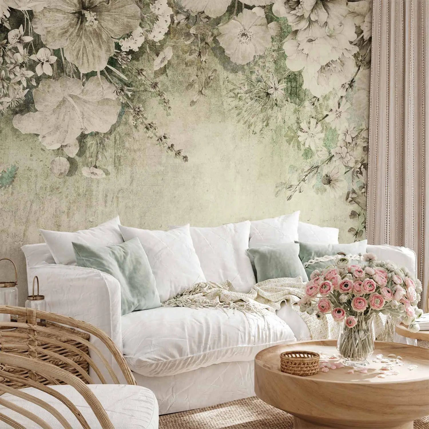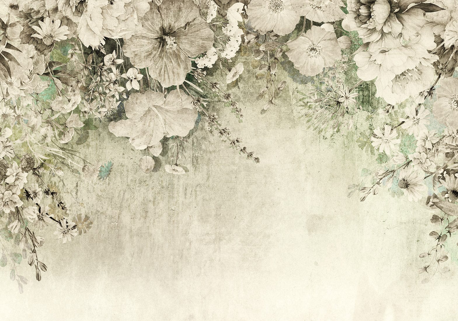 Фотообои - Цветы - различные виды цветов на стене | зеленый