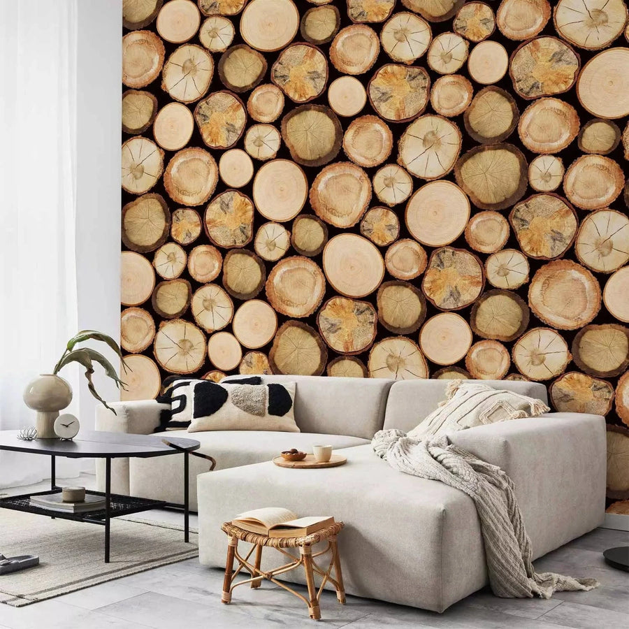 Fototapetes ar koka baļķiem - Kokzāģētava - dabīga krāsā G-ART