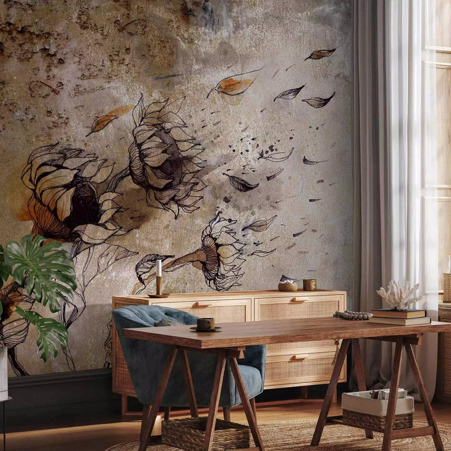 Fototapetes ar ziediem - Rudens krāsu palete, brūna/zelta G-ART