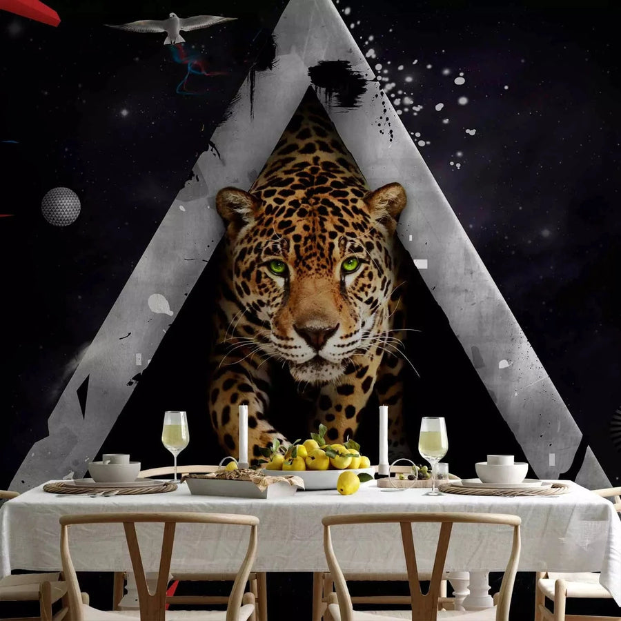 Fototapetes ar 3D ilūziju un jaguāru uz melna fona, 61332  G-ART