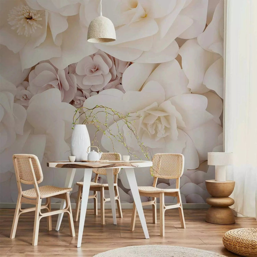 Fototapetes ar stilizētiem ziediem - Ziedu kompozīcija, krēmkrāsā G-ART