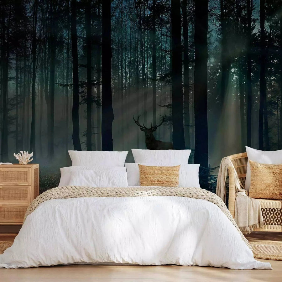 Fototapetes - Noslēpumainais mežs un briedis mistiskos zilos toņos  G-ART