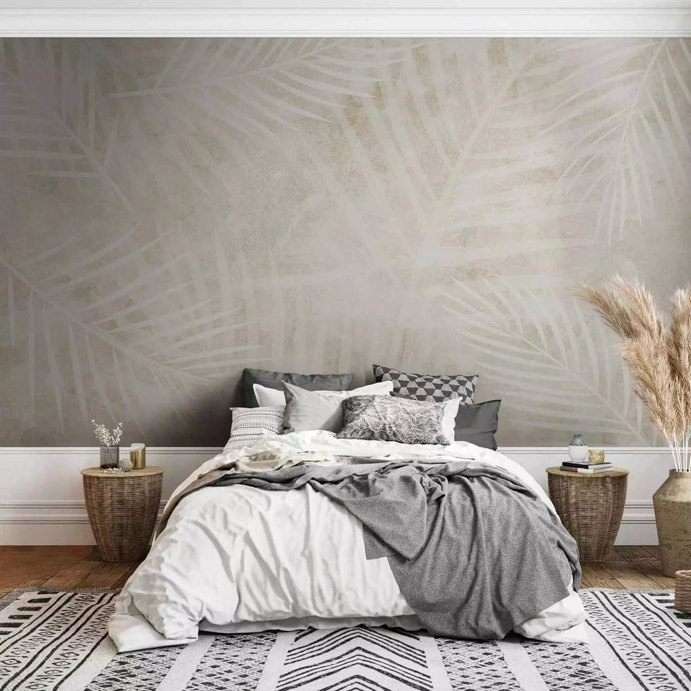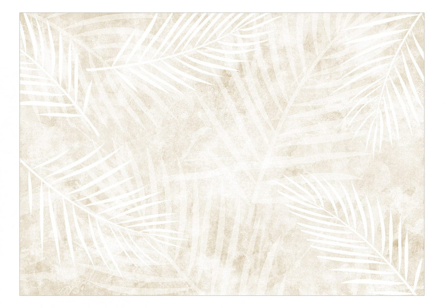 Fototapetes - palmu lapas uz gaiša fona, krēmkrāsā G-ART