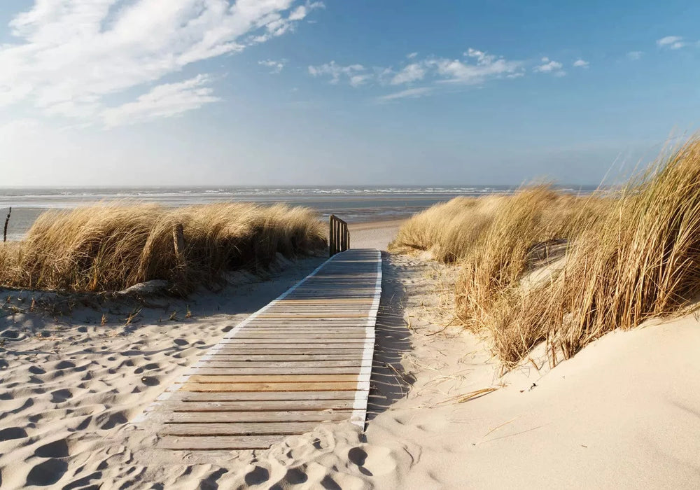 Fototapetes - Smilšu pludmale saules staros, dzeltenos toņos G-ART