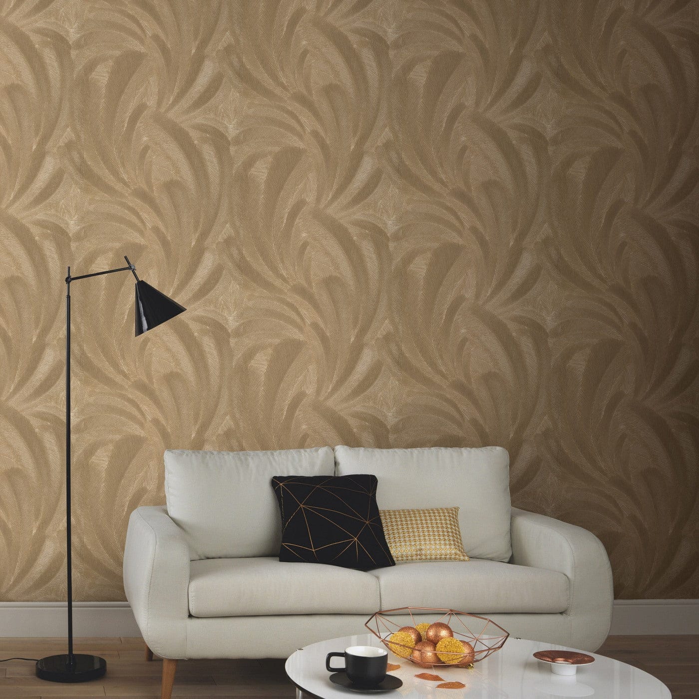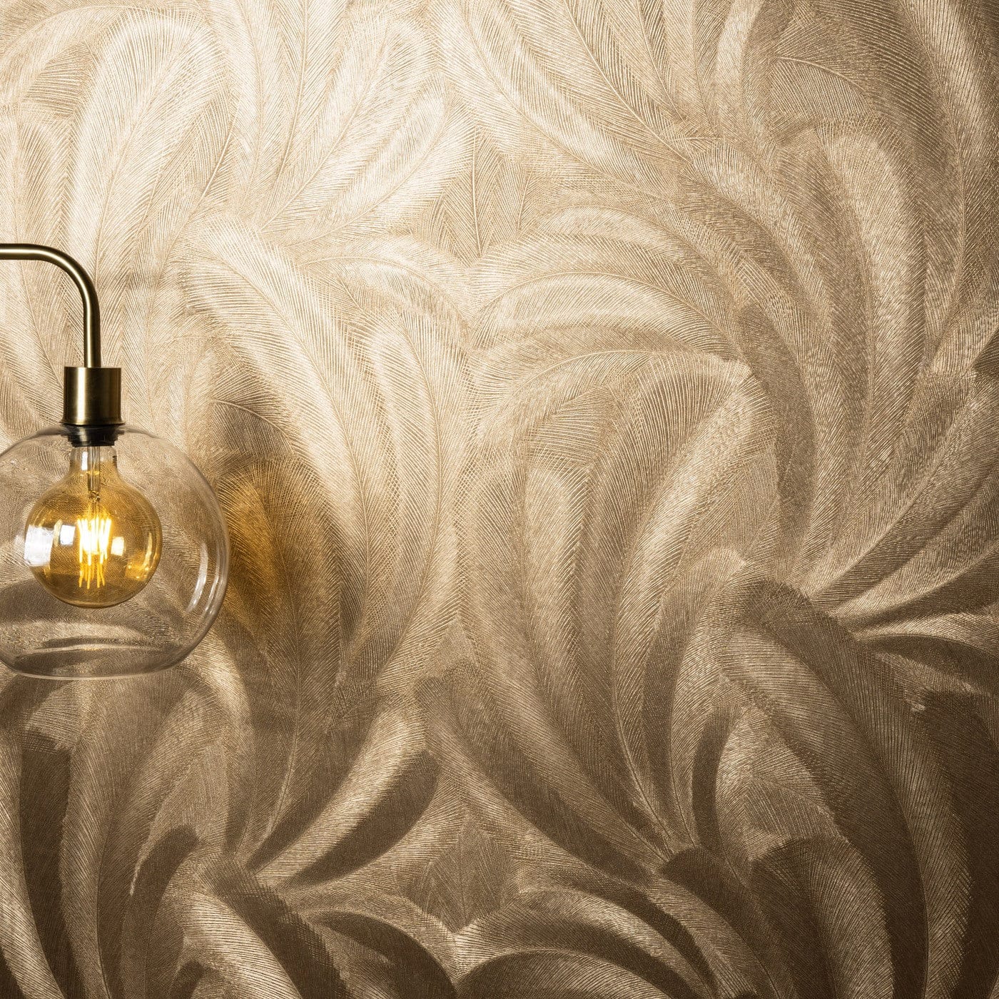 Обои с элегантными и слегка глянцевыми листьями, золото - 3776116