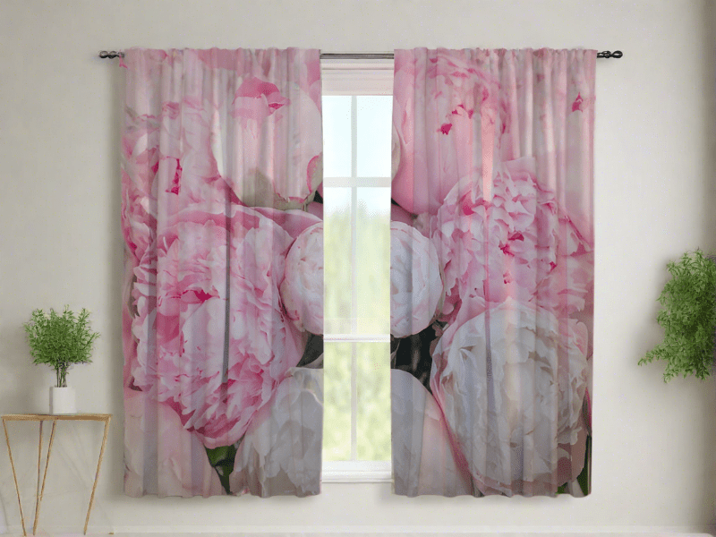 Aizkari ar vasaras ziediem - Elegantas rozā peonijas - nopirkt Tapetenshop.lv