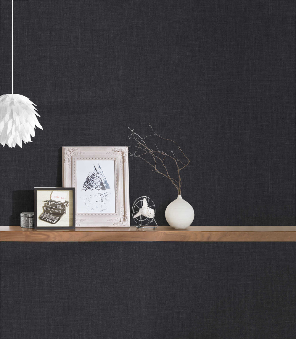 Tapetes antracīta krāsā ar lina struktūru - melnā krāsā, 386941 AS Creation