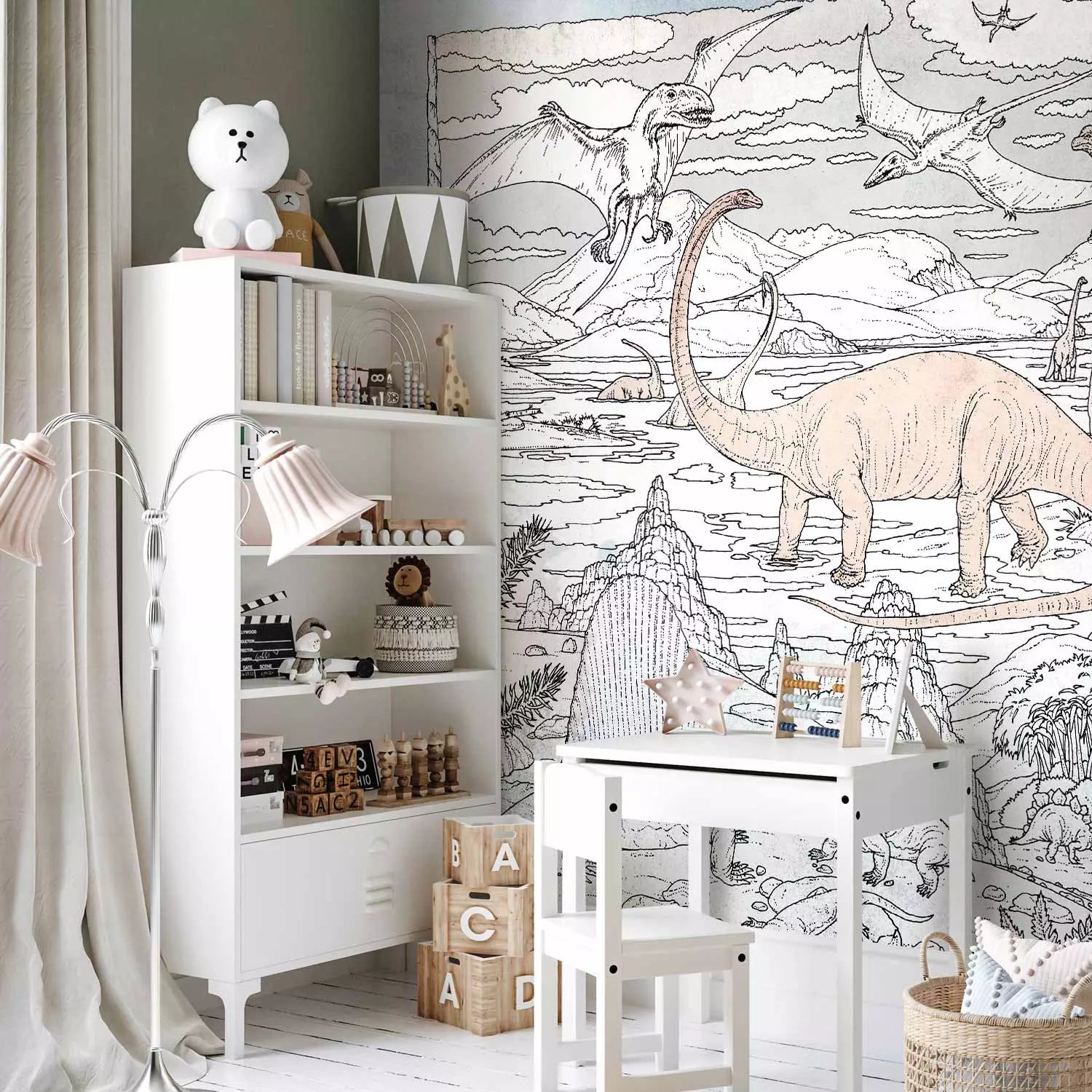 Фотообои - Рисунки динозавров пастельными цветами, 149238