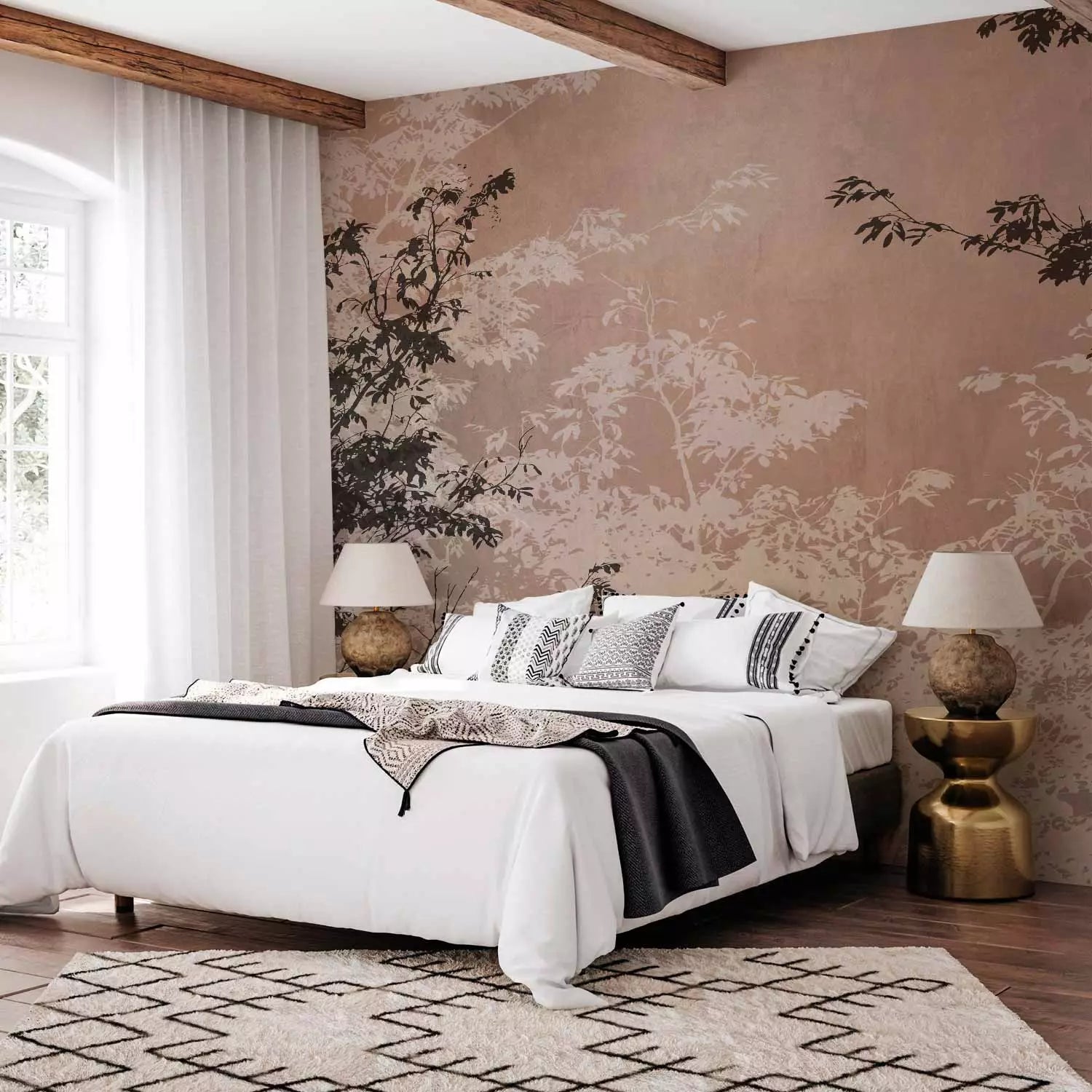Фотообои - Светло- и темно-коричневые ветки деревьев на коричневом фоне, 148819.