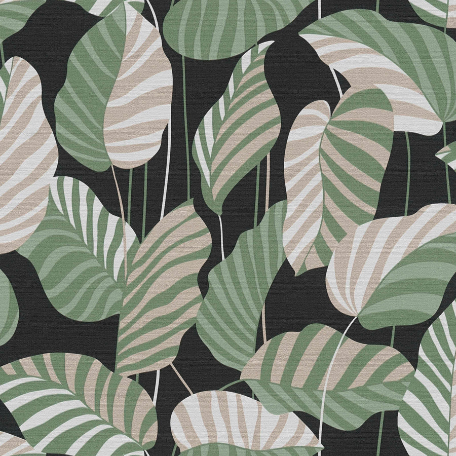 Tapetes ar palmu lapām ar vieglu spīdumu, zaļa, melna - 1373436 AS Creation
