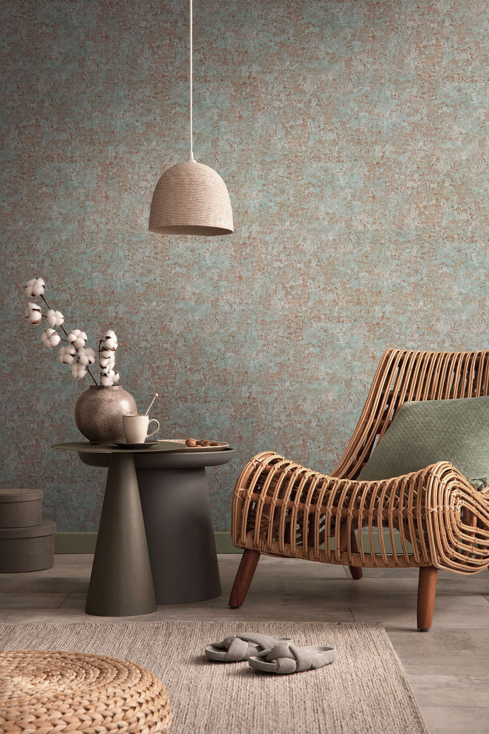 Tapetes ar spīduma efektu un rūsas imitāciju, brūnā, tirkīzā - 1373675 AS Creation