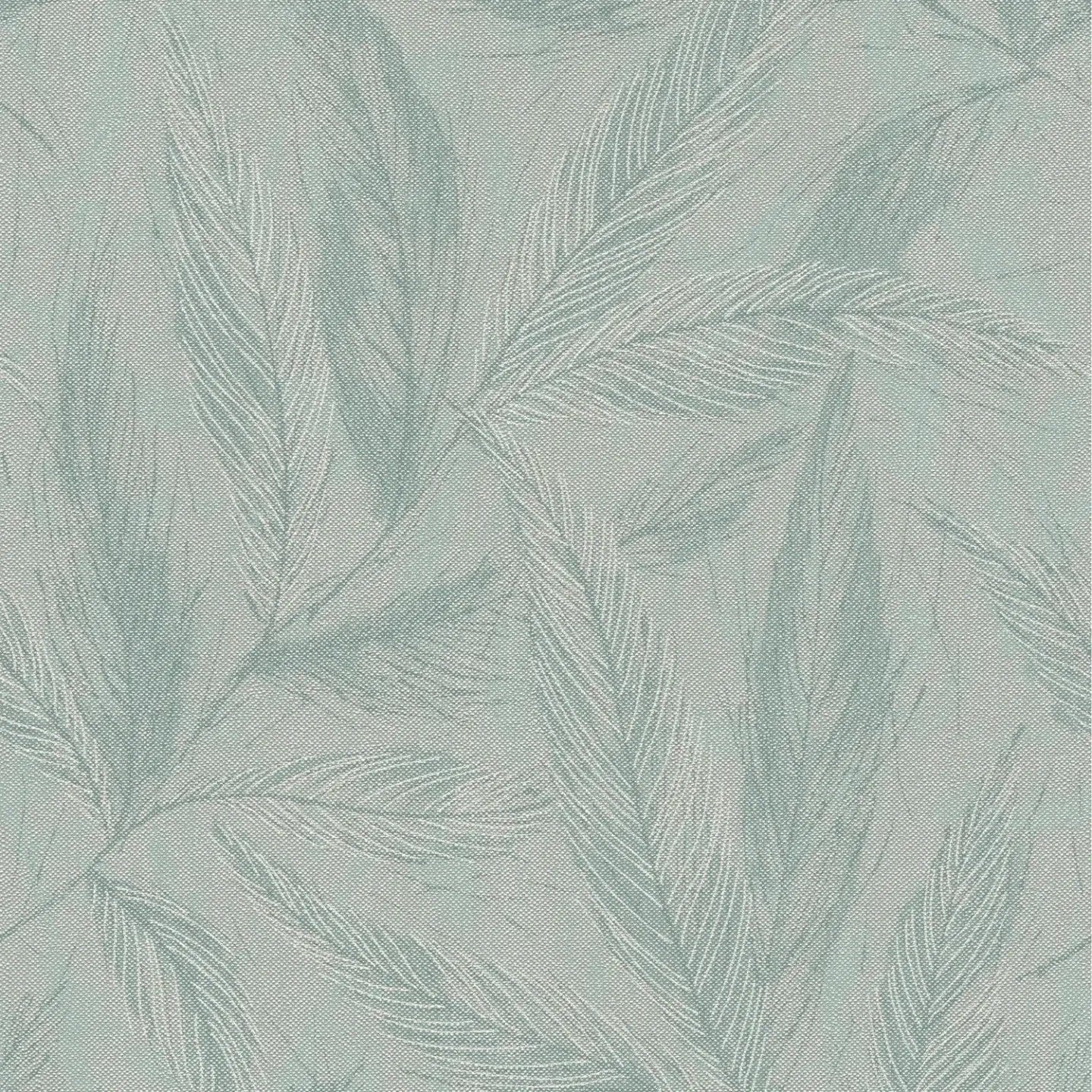 Деликатный, органичный узор из тонких, длинных пальмовых листьев, которые кажутся плавающими друг над другом. Листья стилизованы и выражены с помощью набросанных линий, которые придают им плавный вид. Цветовая гамма прохладная, сдержанная, с оттенками мяты и серого, листья немного светлее фона, создавая нежный, матовый контраст. Стиль современный и спокойный, с ноткой природы и элегантности. Благодаря своей нежной цветовой гамме и гармоничному рисунку обои создают расслабленную, воздушную атмосферу и идеально подходят для придания помещениям легкого, свежего, но уютного ощущения.