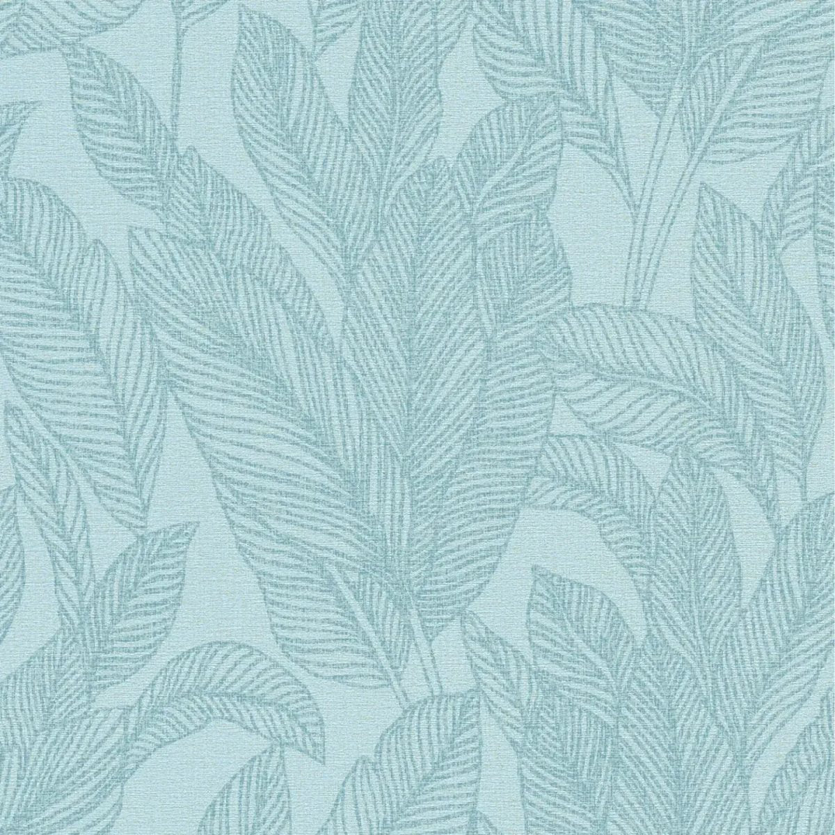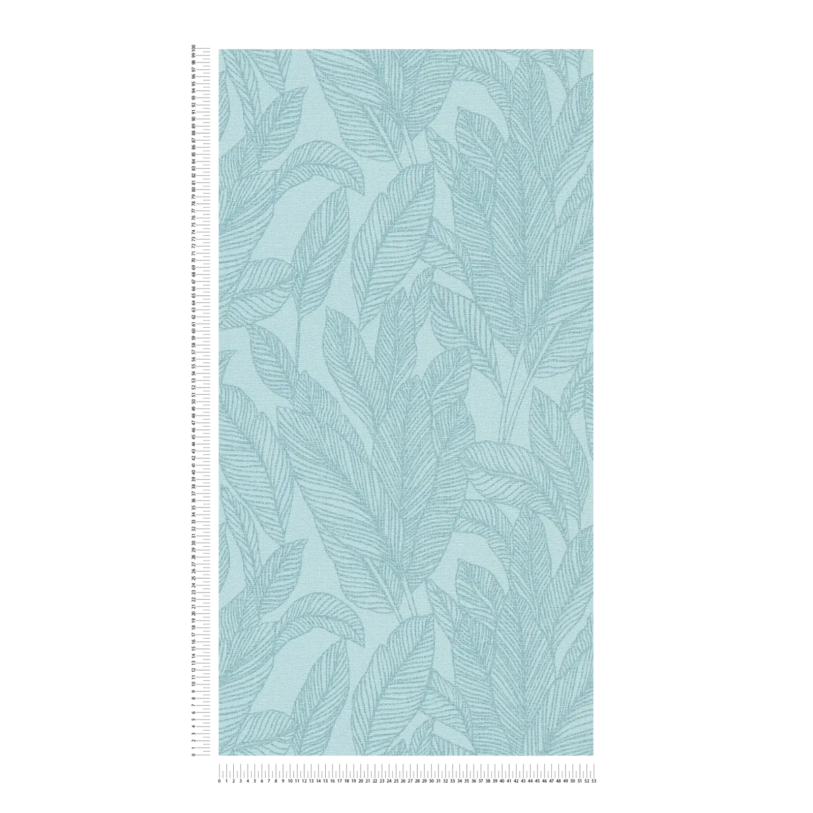 Lielas, sulīgas lapas ar smalkām, paralēlām līnijām kā lapu vēnām klāj visu šo tapetu fonu. Raksts ir skaidri iedvesmots no dabas un atgādina eksotiskus augus, piemēram, banānu vai palmu lapas. Krāsu gamma ir monohroma un vēsās zilo toņu krāsās: gaiši zilo fonu šķērso benzīna krāsas, nedaudz tumšākas līnijas, kas smalki izceļ lapas. Stilizētais attēlojums un smalkā krāsu spēle piešķir motīvam mierīgu, modernu izskatu. Kopējais iespaids ir gaišs un svaigs; tapetes telpai piešķir maigu dzīvīgumu un dabiskuma pieskārienu, neizskatoties uzmācīgi.