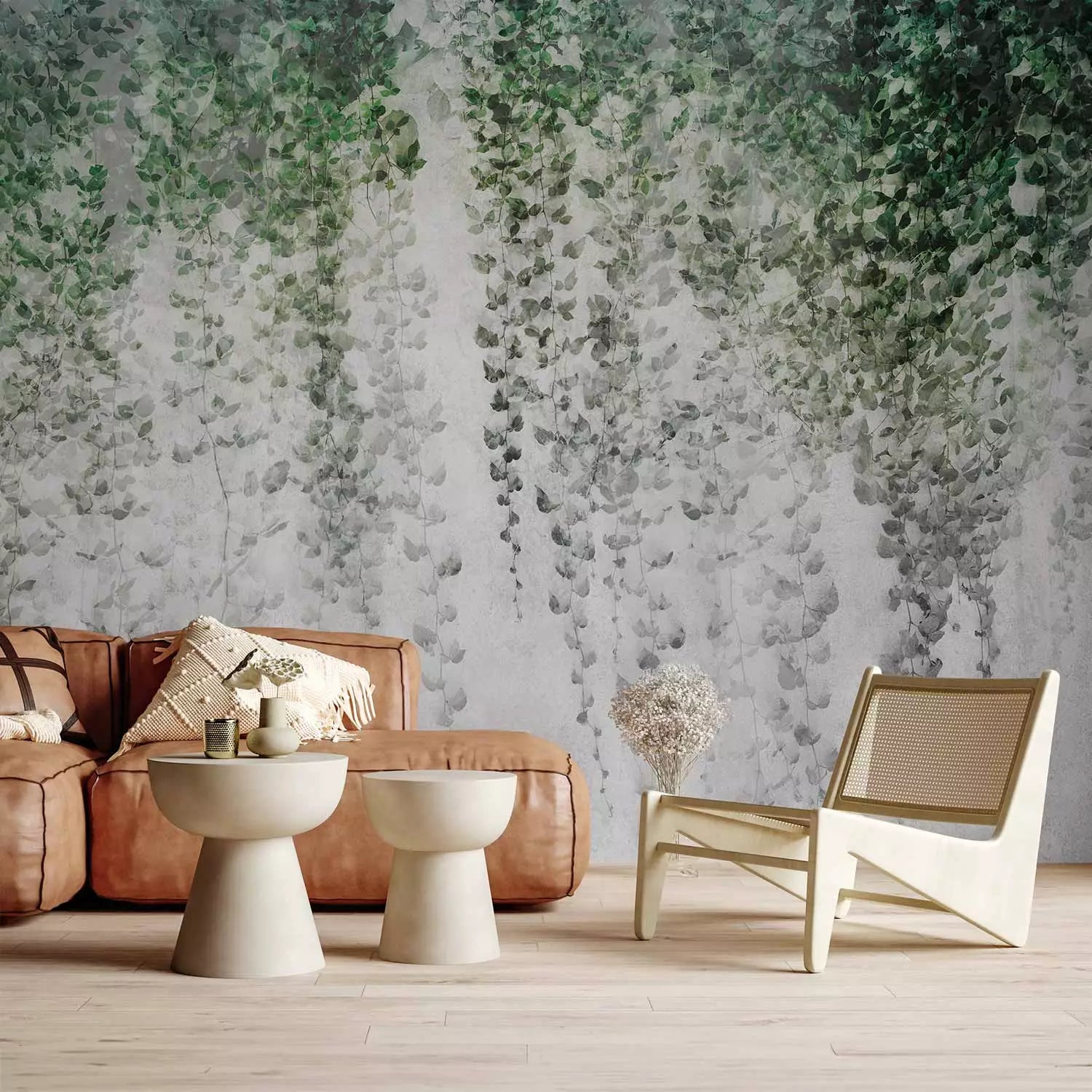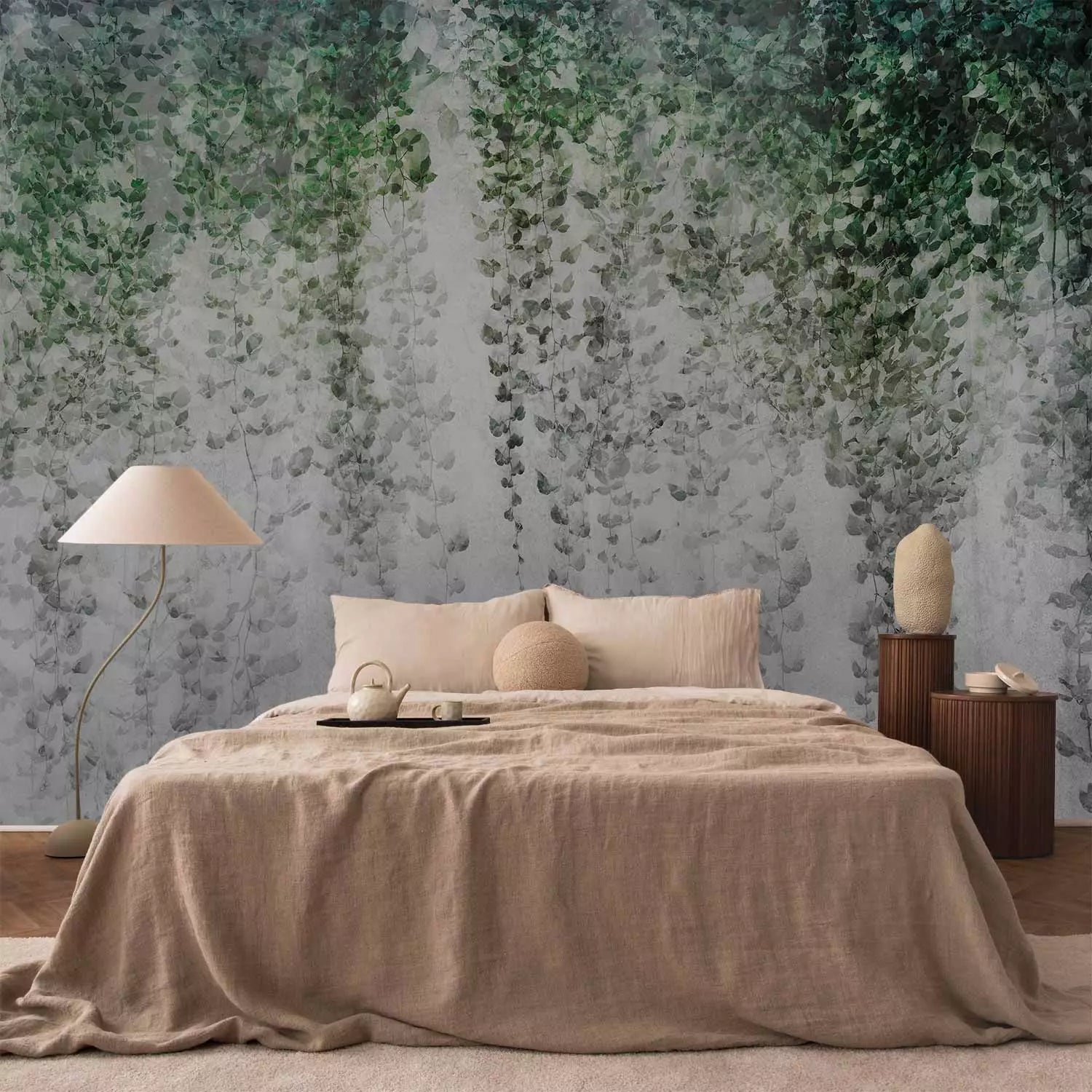 Фотообои - Композиция с темным плющом на стене, 143060