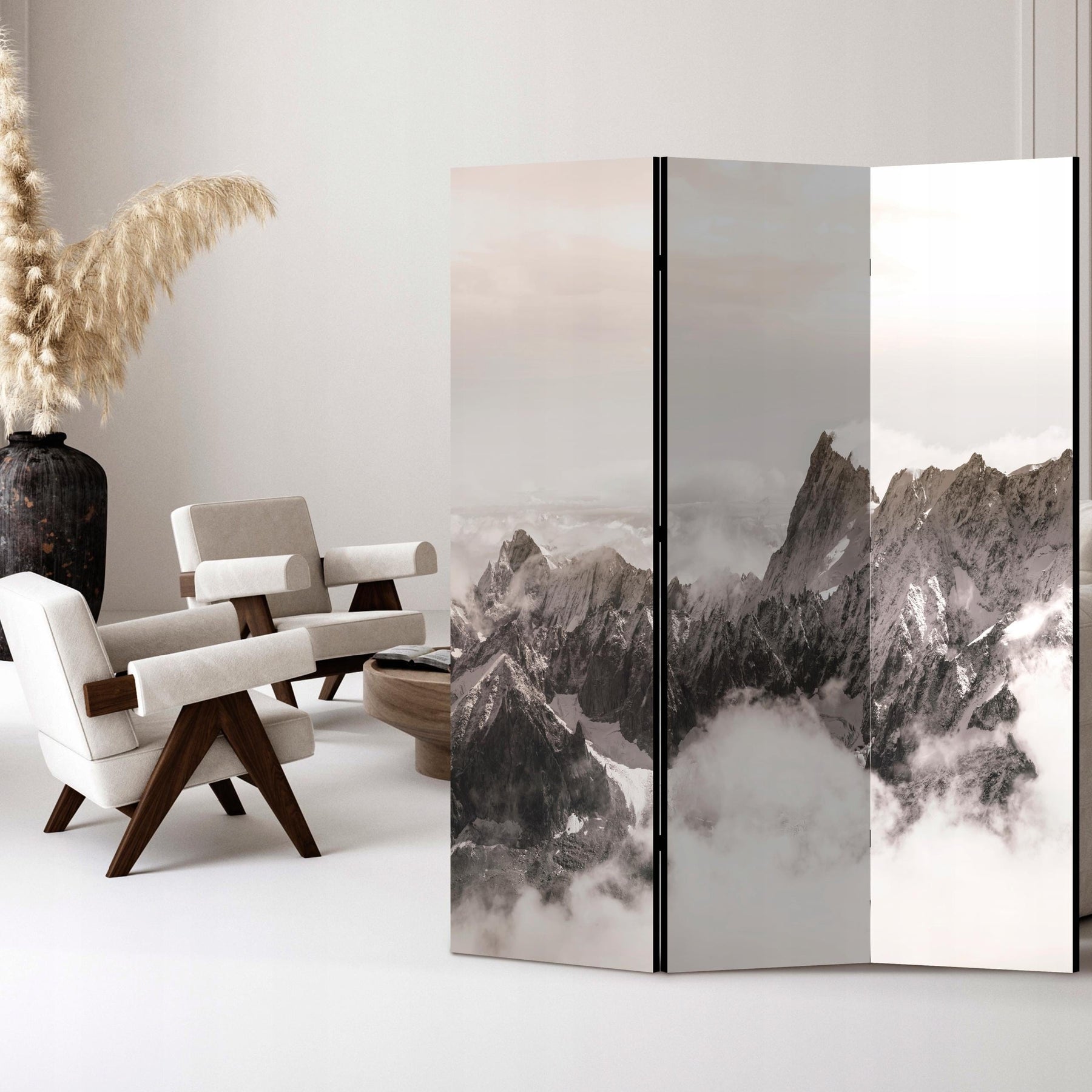 Декоративная ширма для комнаты, двусторонняя, 135x172, Горный пейзаж (Сепия)