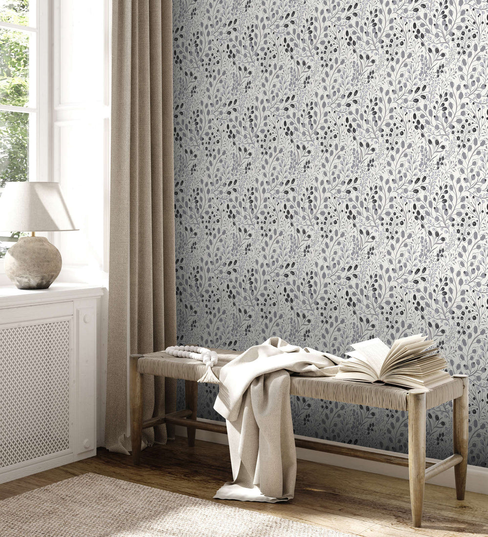 Обои с нарисованным цветочным узором: серые, белые, черные - 1366571