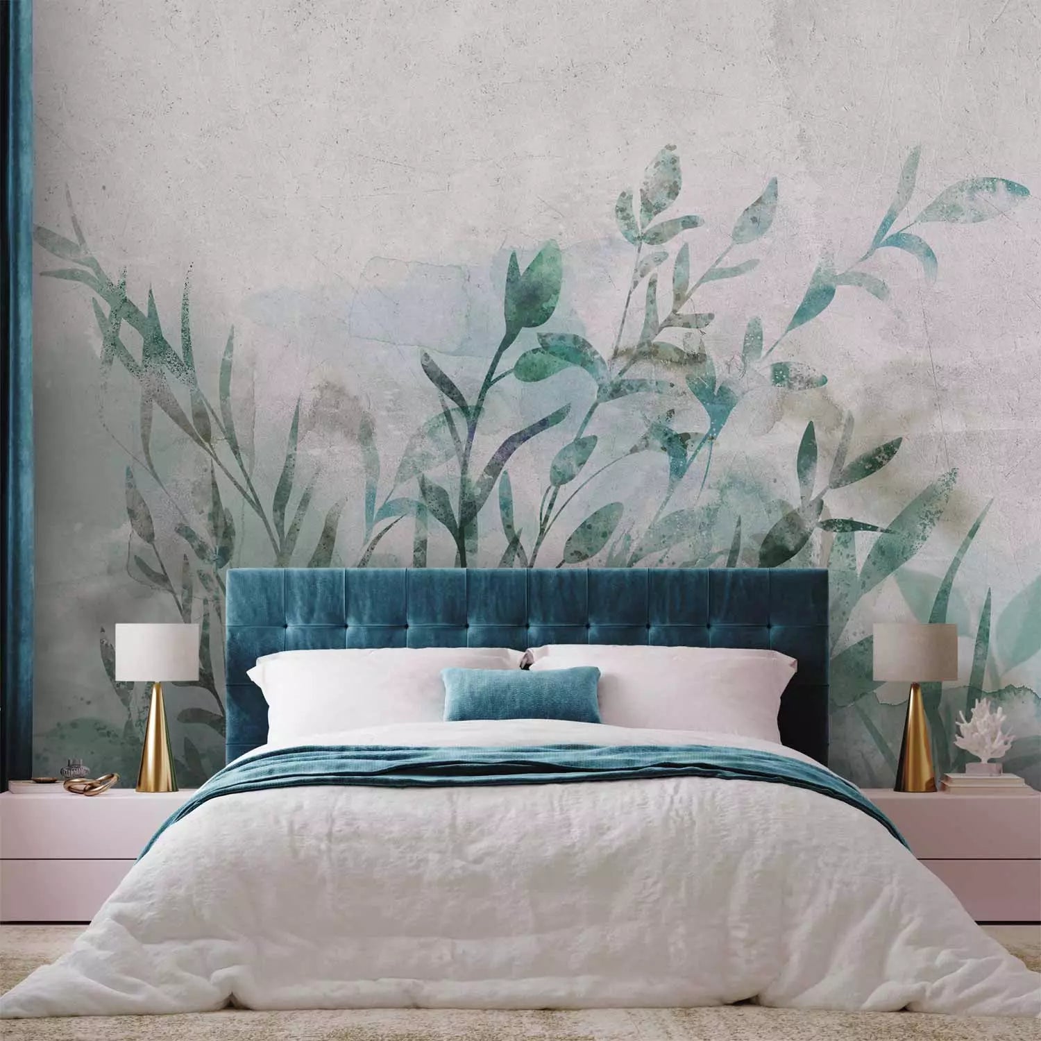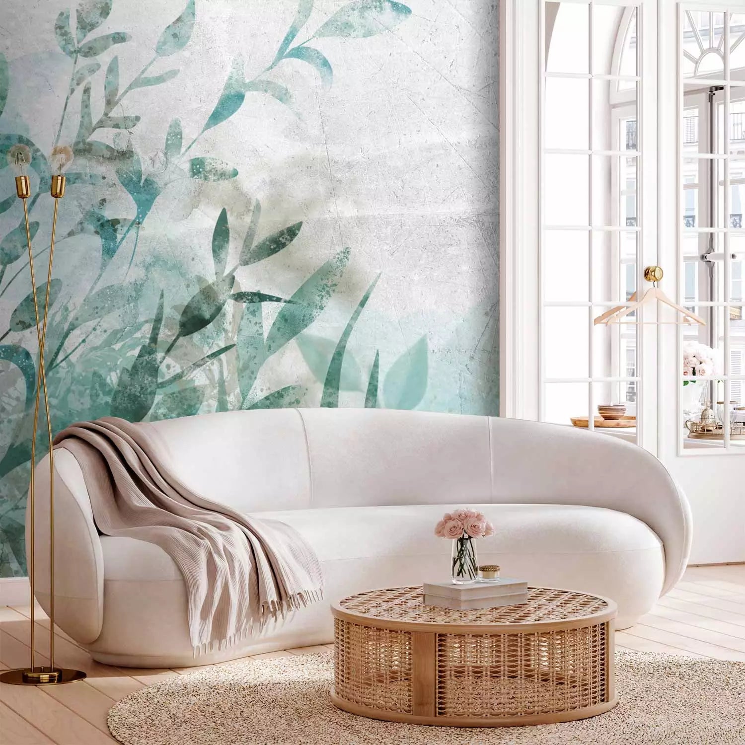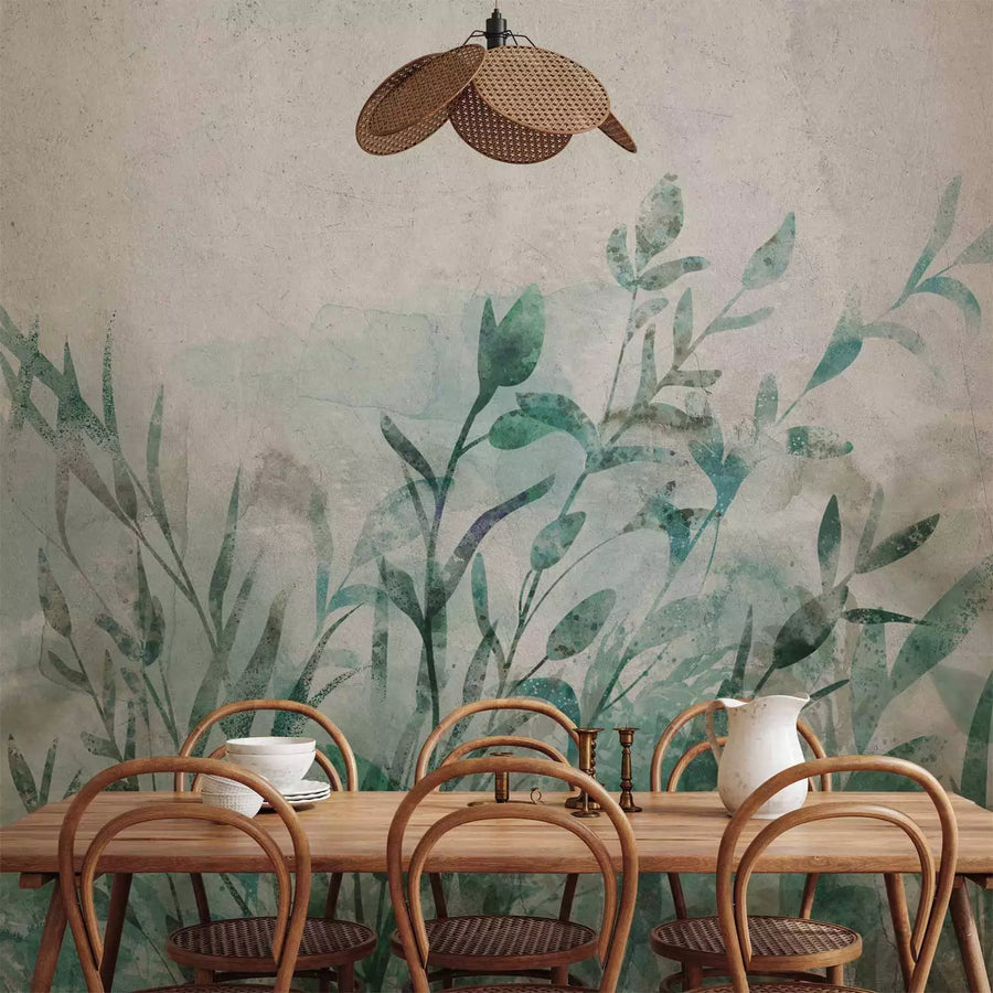 Фотообои - зеленые листья на светло-сером фоне - Натюрморт, 135482