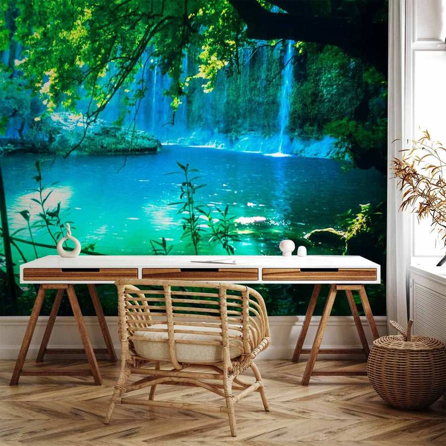 Fototapetes - Kursunlu ūdenskritums, ainava ar tirkīza ūdens koku ēnā G-ART