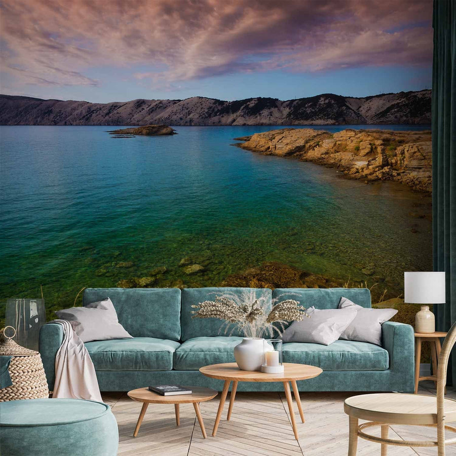 Fototapetes - ainava ar tirkīza jūru un akmeņainu pludmali, 92589  G-ART