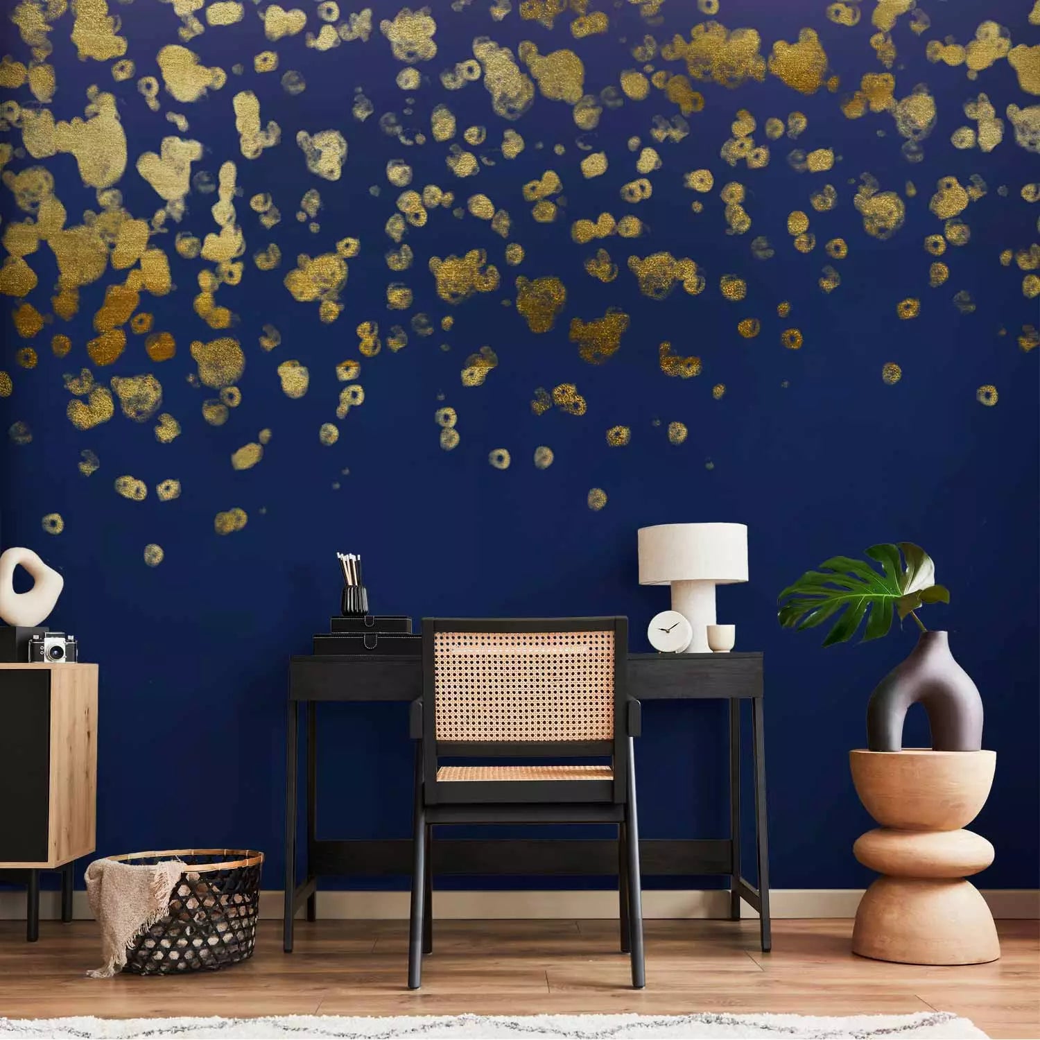 Фотообои с абстракцией в золоте и синем - Золотые капли, 143749