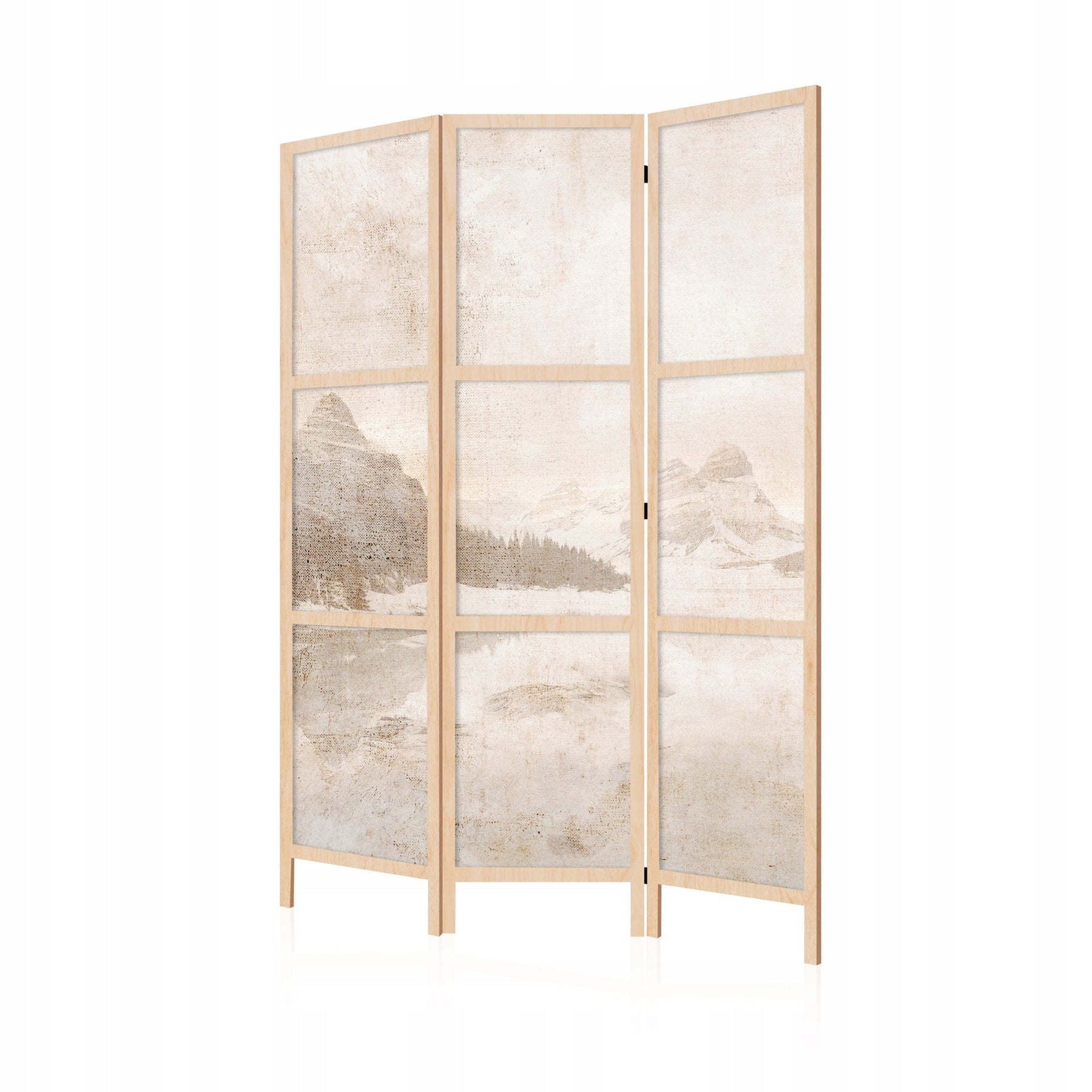 Декоративная японская ширма, односторонняя 135x172, Мотив гор и озера в бежевых тонах
