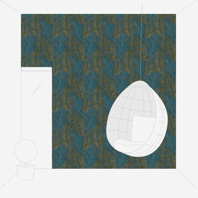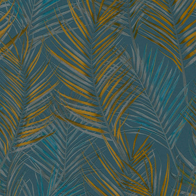 Флизелиновые обои с большими пальмовыми листьями: синий, желтый - 1372363