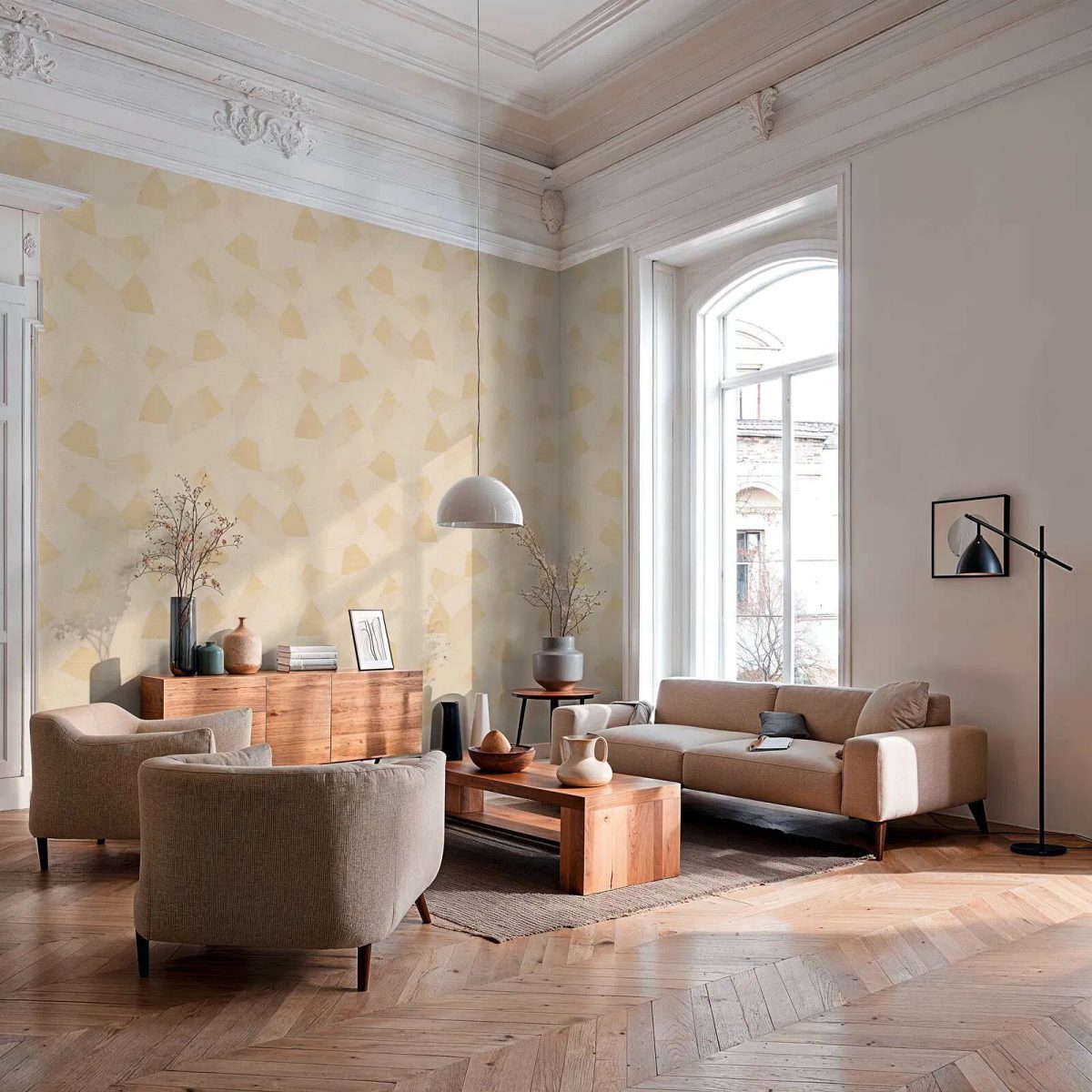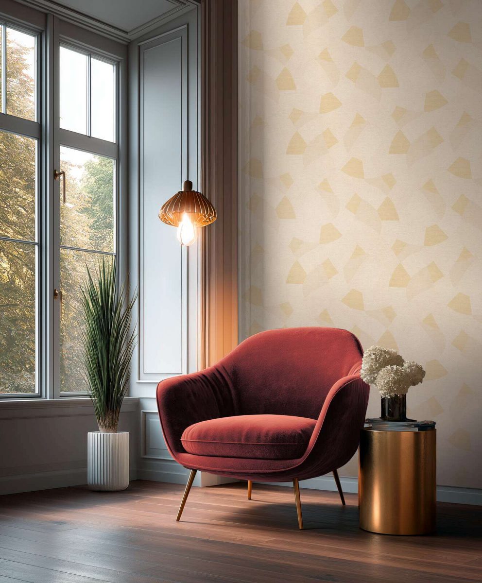 Благодаря легкому блеску и тонкой текстуре эти обои придают помещению приятную атмосферу. Их легко наклеивать, соблюдая 64-сантиметровый раппорт узора по прямой линии, что обеспечивает идеальное совмещение рисунка. Обои устойчивы к воздействию солнечного света, а высококачественную поверхность можно чистить даже щеткой и мыльным раствором. Снимаются они легко – достаточно смочить водой. Гамма бежевых и кремовых оттенков создает гармоничное и теплое общее впечатление. Узор состоит из перекрывающихся геометрических форм и круглых сегментов, в которые регулярно вплетены тонкие линии. Это создает захватывающий контраст между графической строгостью и мягкими изгибами, излучая расслабленную современность.